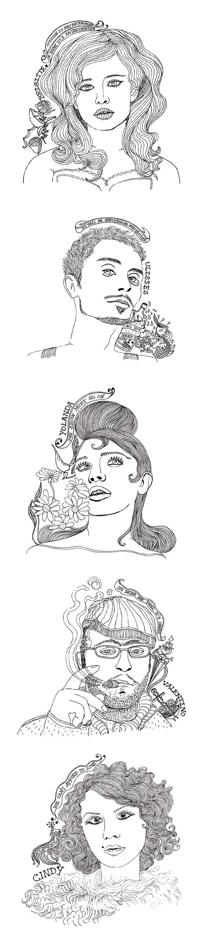 2012 Illustrations for bartenders uniforms ("Frank & Stein" assignment for "Pensão Amor")